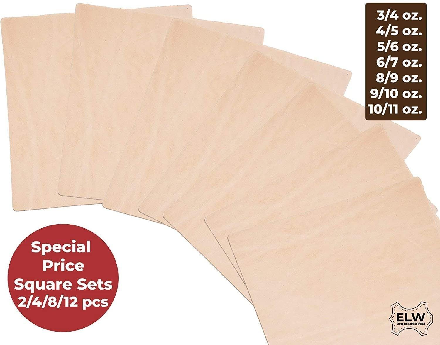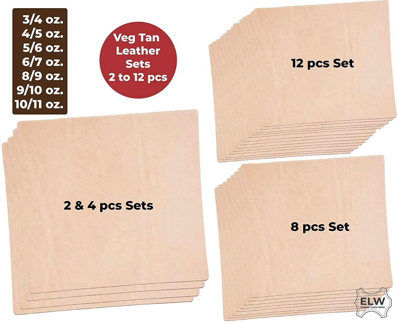 European Leather Works (ELW) Vegetable Tanned Full Grain Leather 3/4oz, 4/5oz, 5/6oz, 6/7oz, 8/9oz, 9/10oz, 11/12oz (1.2-4.4mm) Thickness Weight Special Priced Bundle Sets of 2, 4, 8,12 pcs πŸ“Œ Vegetable Tanned Leather: Vegetable Tanned Tooling Leather (Full-Grain Natural Hide). Due to the tanning process, the leather color is Natural and is not a Defect of the Leather. βœ… 3/4oz, 4/5oz, 5/6oz, 6/7oz, 8/9oz, 9/10 oz, 11/12oz (1.2-4.8mm) Thickness Weight Options: Perfect for Tooling, Stamping, Embossing, Engraving, Water Molding, and Dyeing Leather Craft Projects. βœ… Special Priced Bundle Sets: Sizes 6"x6", 6"x8", 6"x10", 6"x12", 12"x12", 12"x24" in Bundles of 2pcs, 4 pcs, 8pcs, 12pcs. European Leather Works (ELW) Vegetable-tanned leather uses the first layer of the hide, also known as tree cream (cake) skin leather. βœ… 100% NATURAL FULL GRAIN LEATHER: Imported from European young steers, bulls. Bull Hide Leather. Not Weak as Cowhides. Tanned with Italian tech and Natural Vegetable Oils. βœ… CRAFTSMEN GRADE QUALITY & 100% USEABLE: NO HOLES, NO QUESTIONABLE MARKS, also BEGINNER-FRIENDLY! This leather is the highest in quality that you can find, this isn’t scrap or leftover leather, this is Full Grain, high-quality leather that is cut with you in mind. πŸ“Œ APPLICATIONS: Fit for all Leather Craft Projects: Tooling, Engraving, Stamping, Molding, Dyeing, Knife sheath, Gun holsters, Guitar covers & straps, furniture, Leather Armor, Jewelry Boxes, Map Tube Boxes, Insoles, Shoes, Hats, Belts, Straps, iPhones Cases, Ipad Covers, Airpod Covers European Leather Works is not just a seller of these leather pieces, but we craft our own products and do our own projects. The leather we sell must be meet our years of experience plus very high standards!