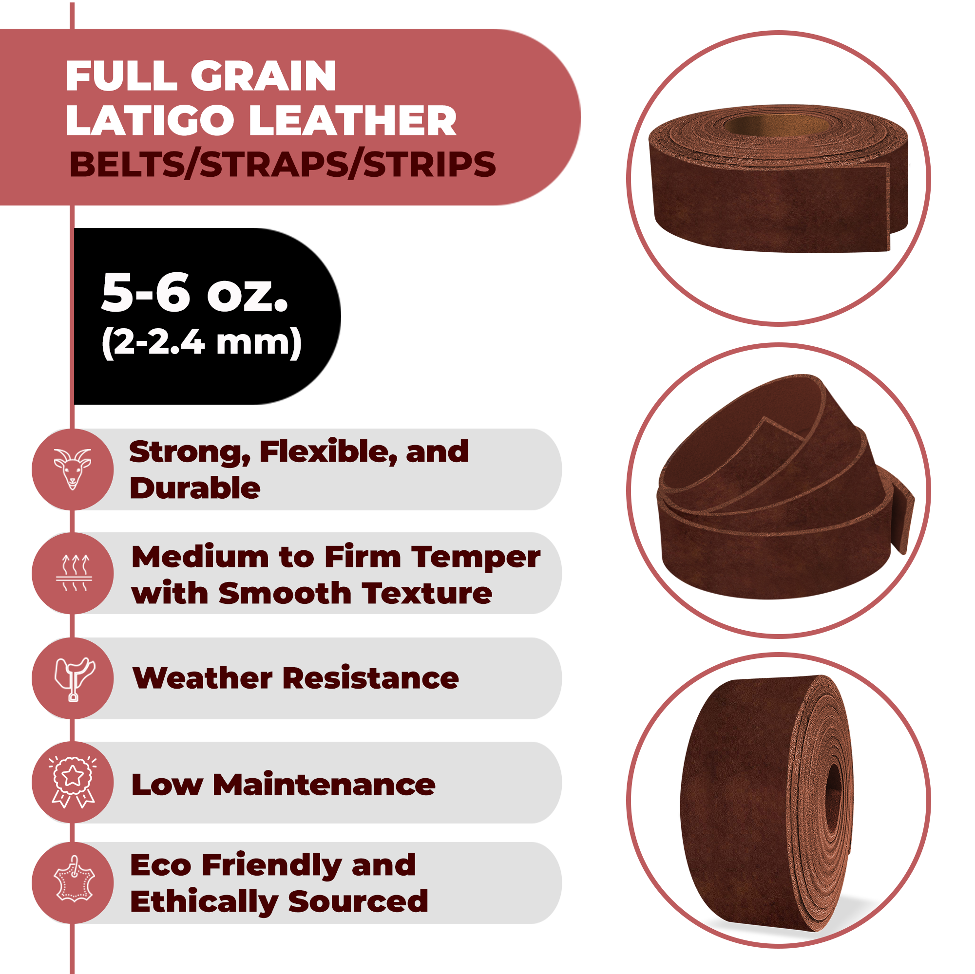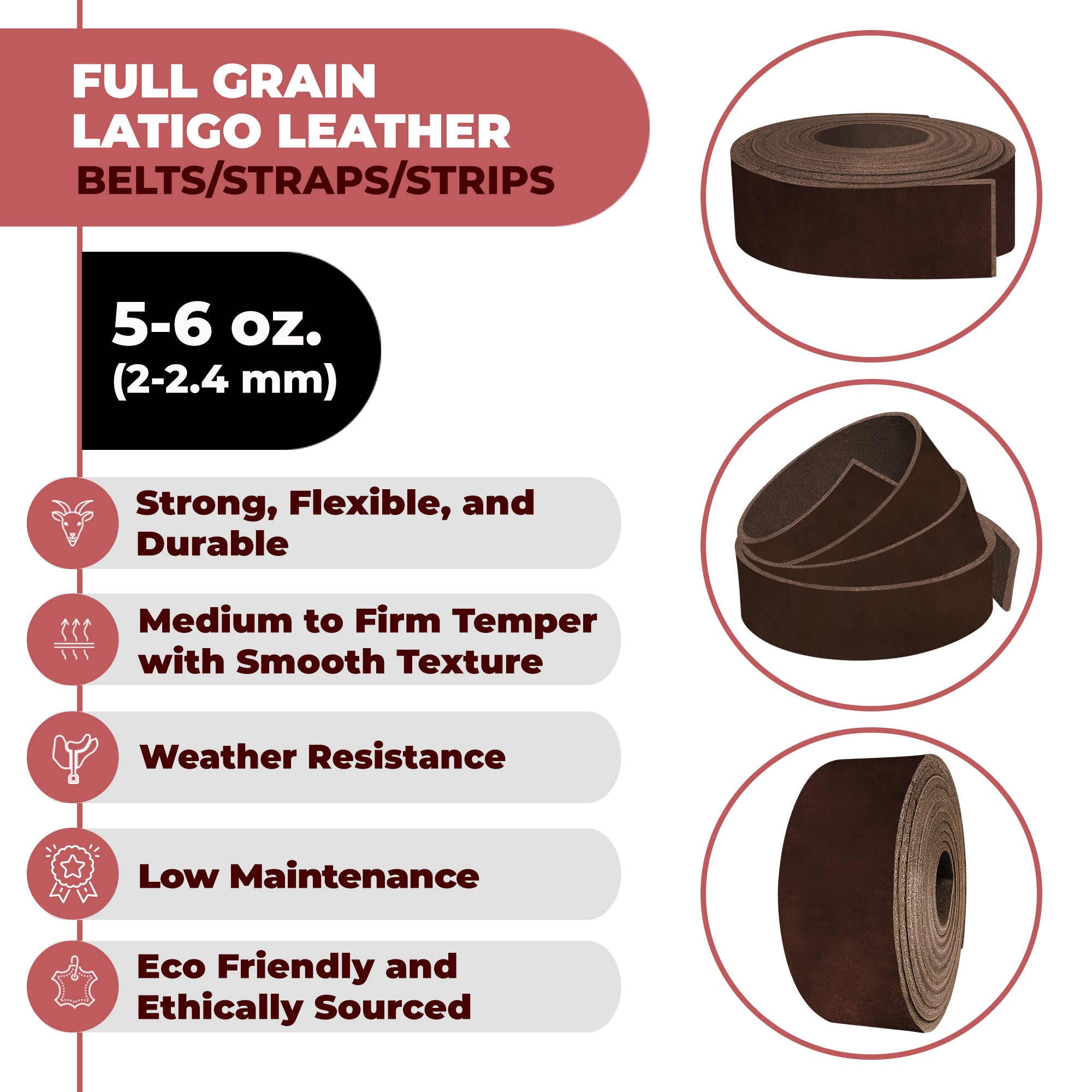 ELW Latigo Leather 5-6 oz. (2-2.4mm) Straps, Belts, Strips 60" Length Full Grain Leather Cowhide DIY Arts & Craft Projects, Clothing, Jewelry, Wrapping