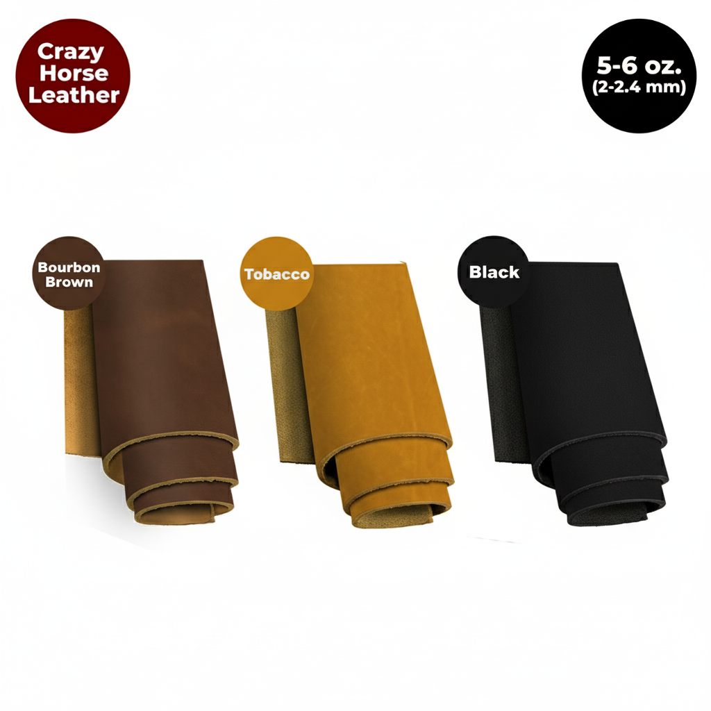 5-6 oz. (2-2.4mm) Thickness Weight Crazy Horse Oil Tanned Full Grain Leather