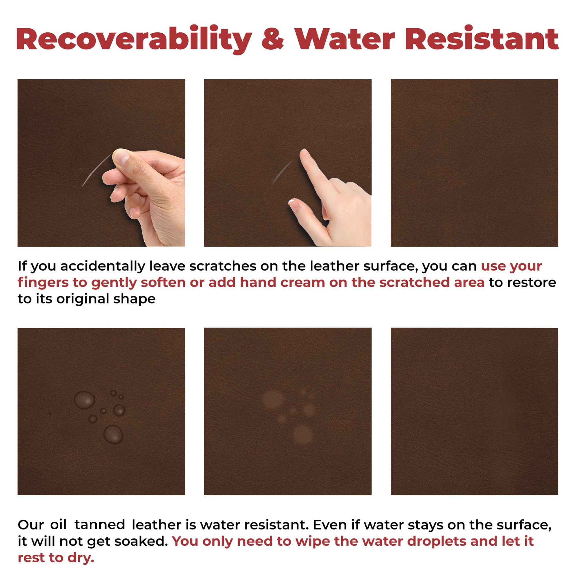 NO HOLES, BEGINNER-FRIENDLY, Eco-Friendly, Safe for your Skin & Pets. Our leather is high in quality with a nice Full Grain & Oil Tanned Finishing that is high in quality and finish!