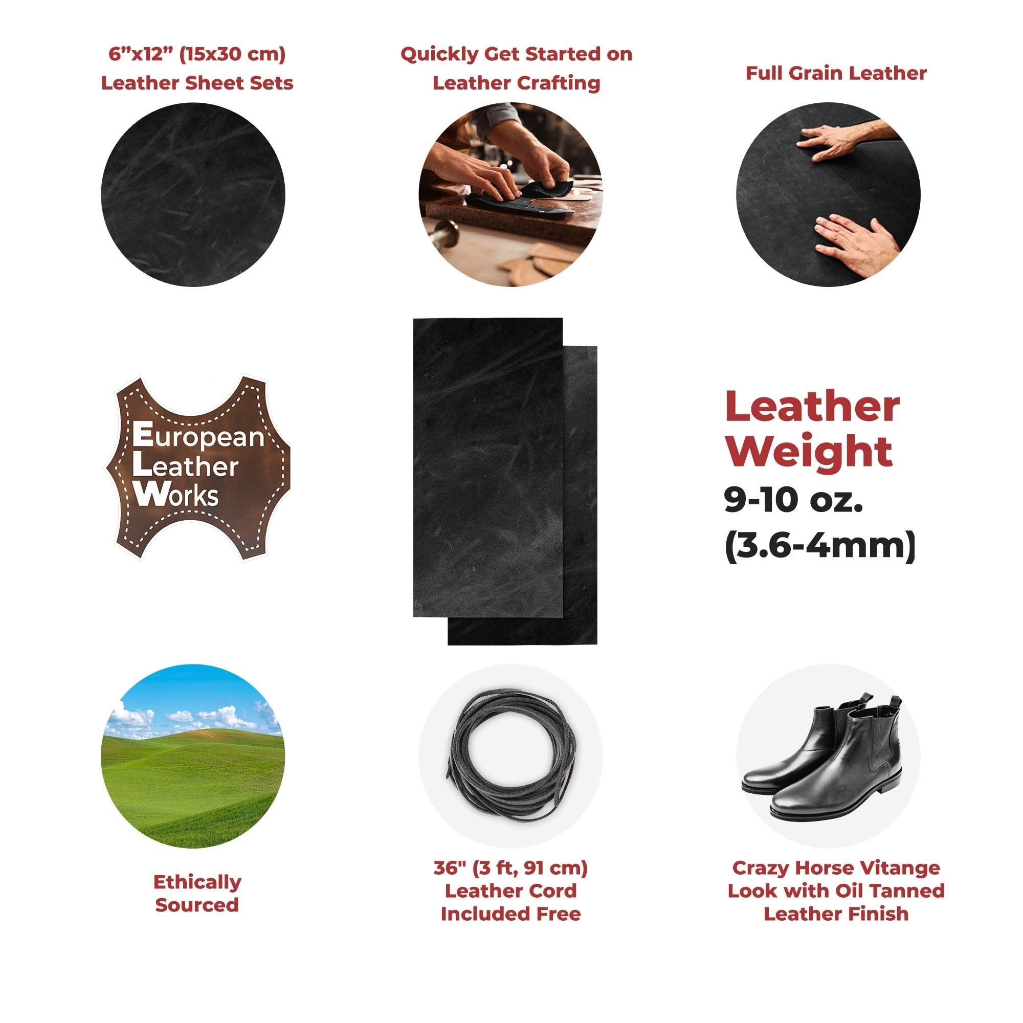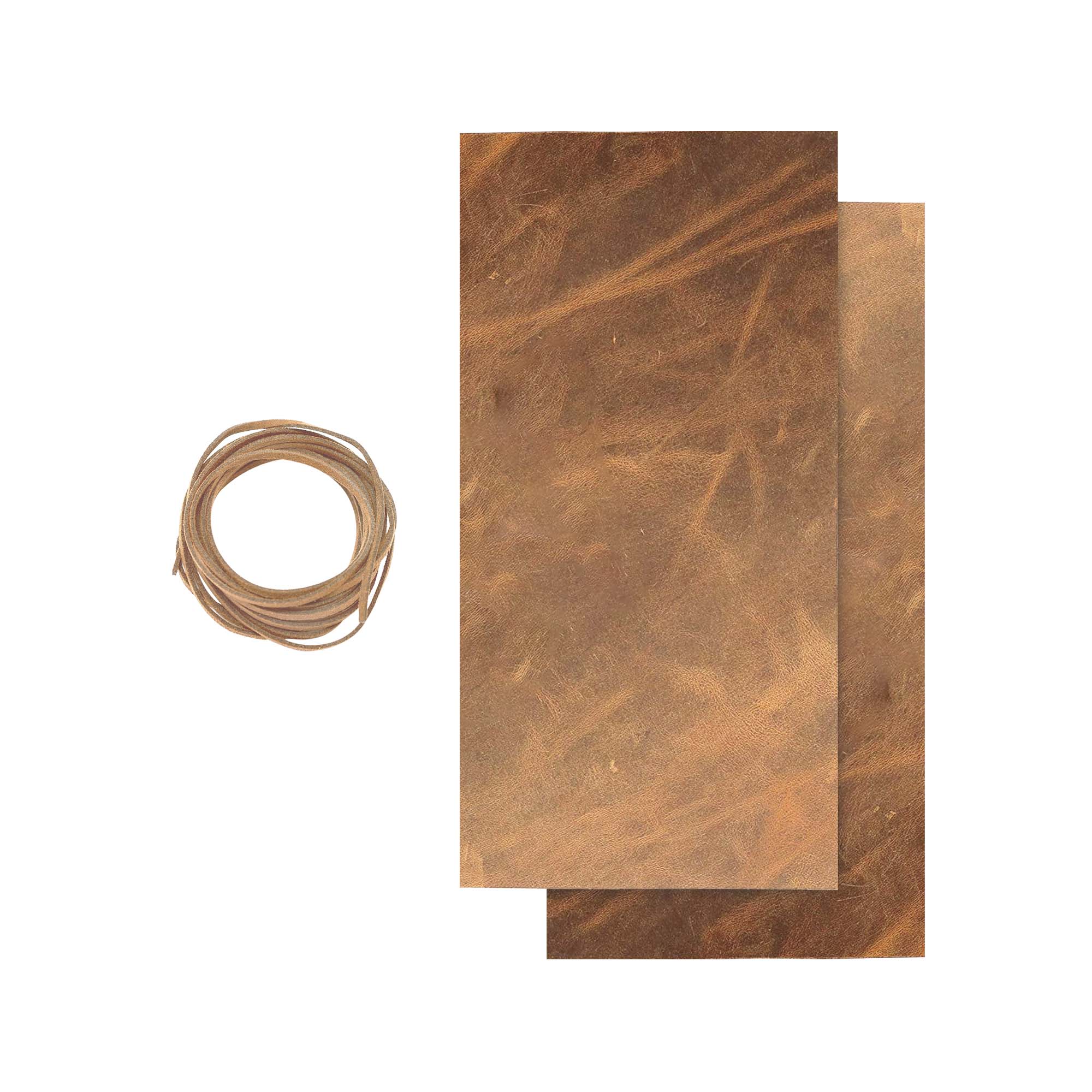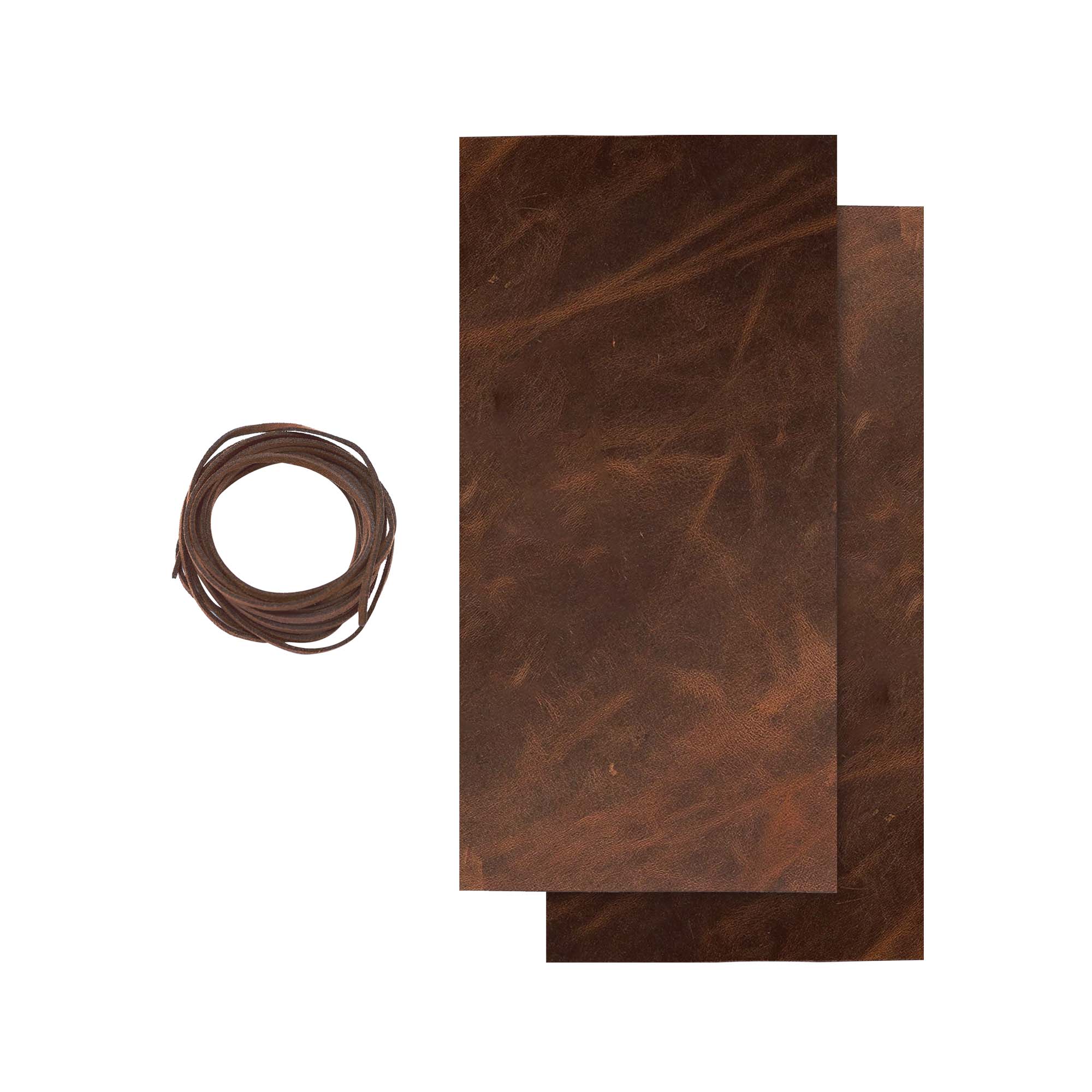 ELW 9-10 oz (3.6-4mm) Full Grain Leather Craft Sets with Cord Braiding String 36", Oil Tanned Real Cowhide for Tooling, Carving, Craft, Repair, Knife Sheaths