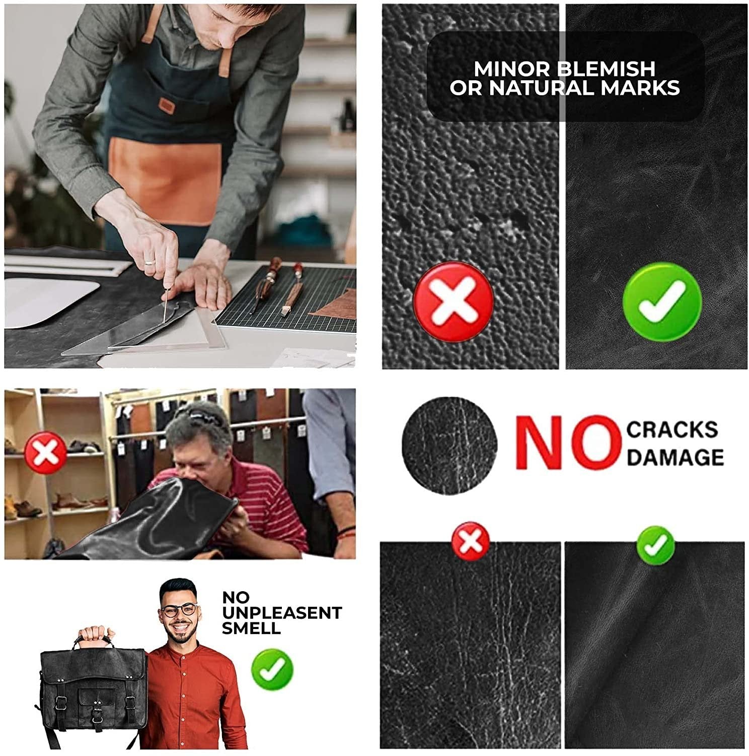 Our leather is made from the highest quality cowhide. Since the leather is made of the least damaged skin, you will hardly find any blemishes, holes, & defects on the leather's surface. Note natural leather hides will have some minor blemishes, ticks, scars, wrinkles but we try to minimize those issues.