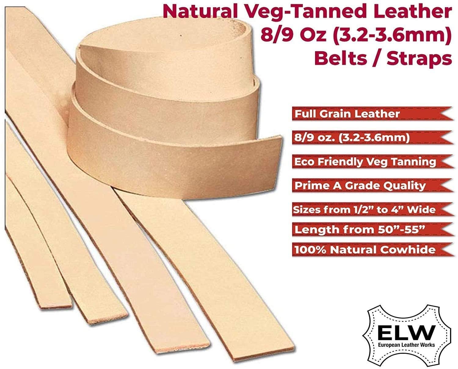 ELW 8/9 oz. (3.2-3.6mm) Thickness Belt-Blanks-Strips-Straps from 1" to 10" Wide and Lengths to 84" Import Tooling Full Grain Natural Cowhide Veg Tanned Leather