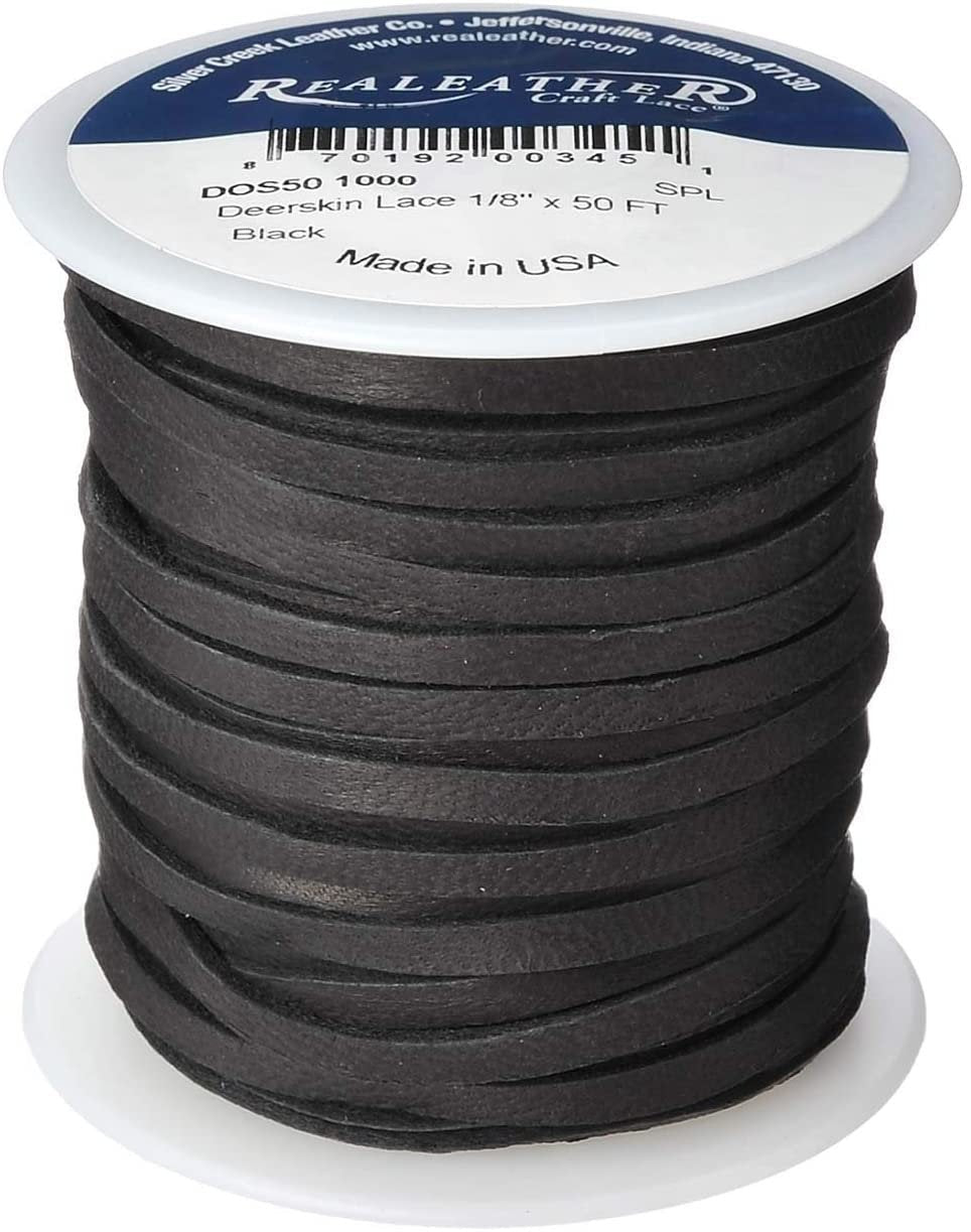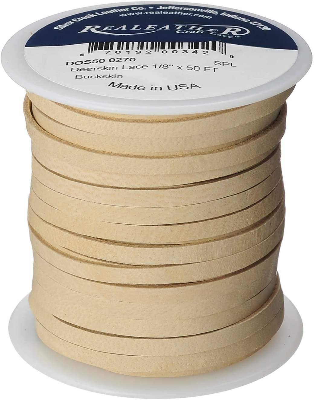 Realeather Deerskin Leather Lace | Size 1/8" x 50' (3.2mm x 15.24m) | 2/3 oz Thickness (.8-1.2mm)